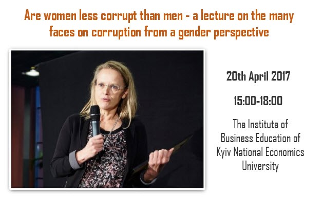 Обговорення всіх цих важливих питань відбулося під час публічної лекції «Чи жінки менш корумповані, ніж чоловіки - лекція про багатоликість корупції з гендерної точки зору», яку провела шведський експерт Лена Андерссон 20 квітня 2017 р. в Інституті бізнес-освіти.